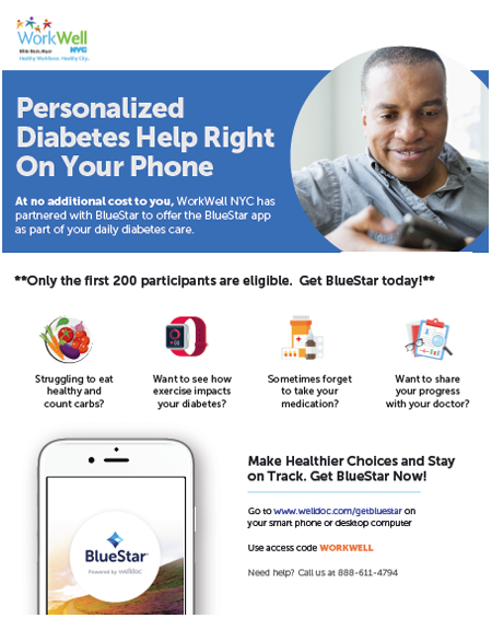 Workwell NYC has partnered with WellDoc to offer an innovative diabetes management program for employees with type 2 diabetes. This pilot program is only available to the first 200 registrants! Learn more here.
